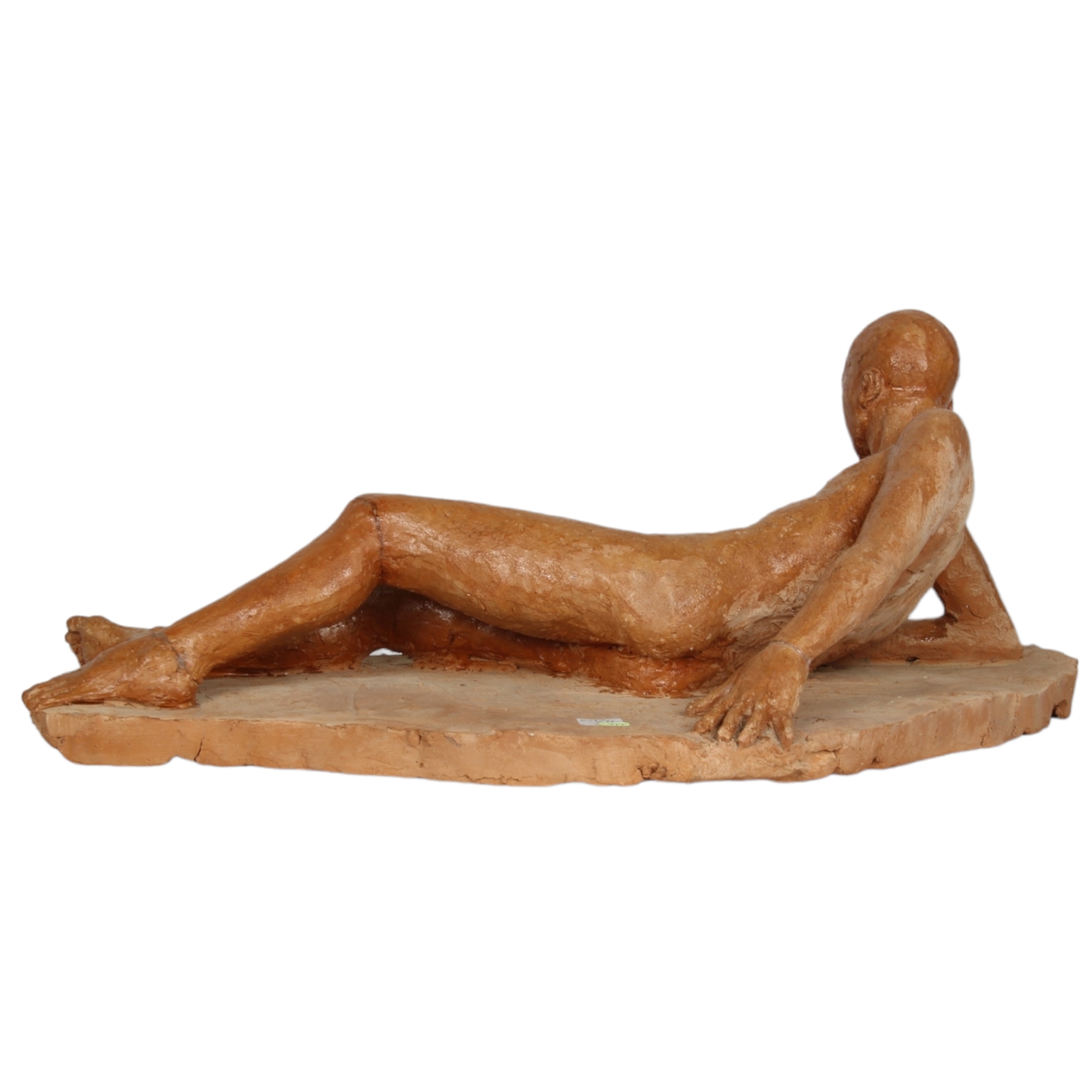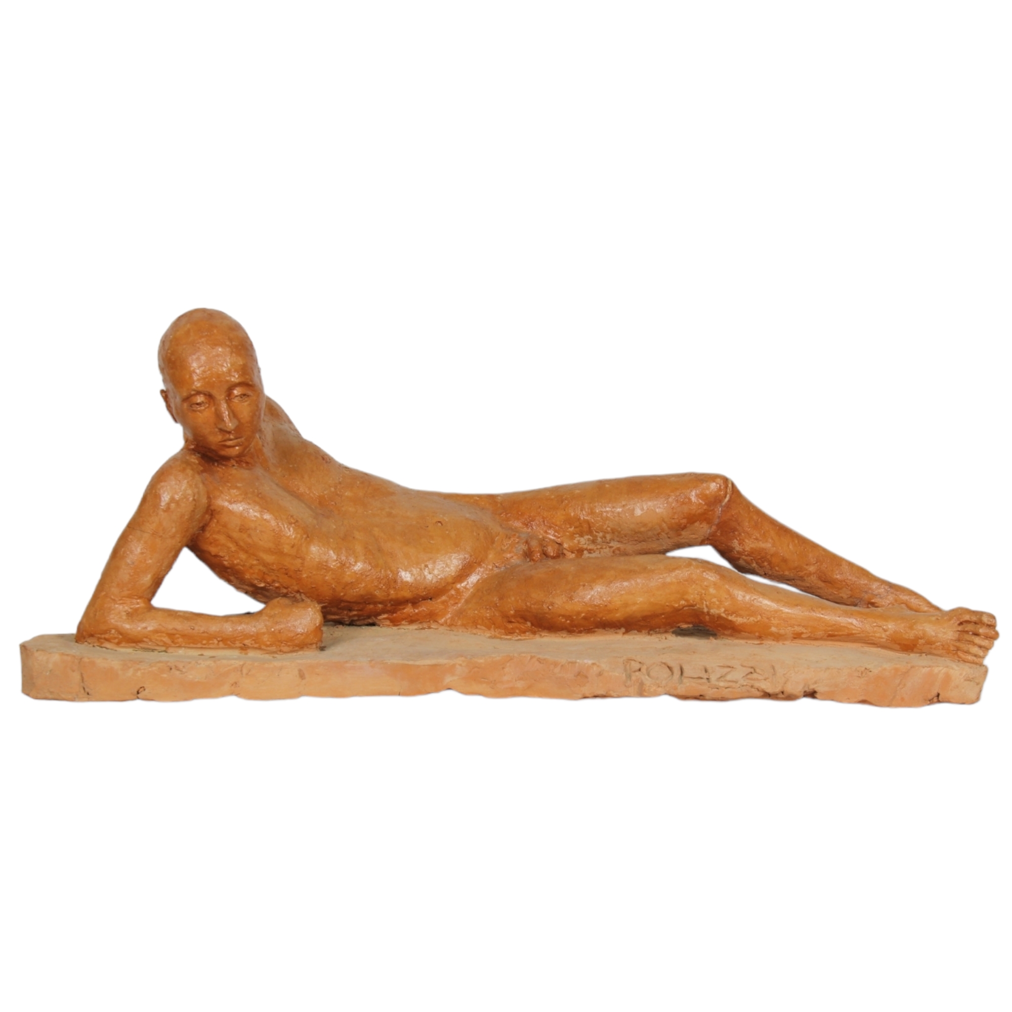 SCULTURA in terracotta Raff nudo d'uomo disteso firmato Polizzi XX secolo h cm 22,5 x 55 x 32