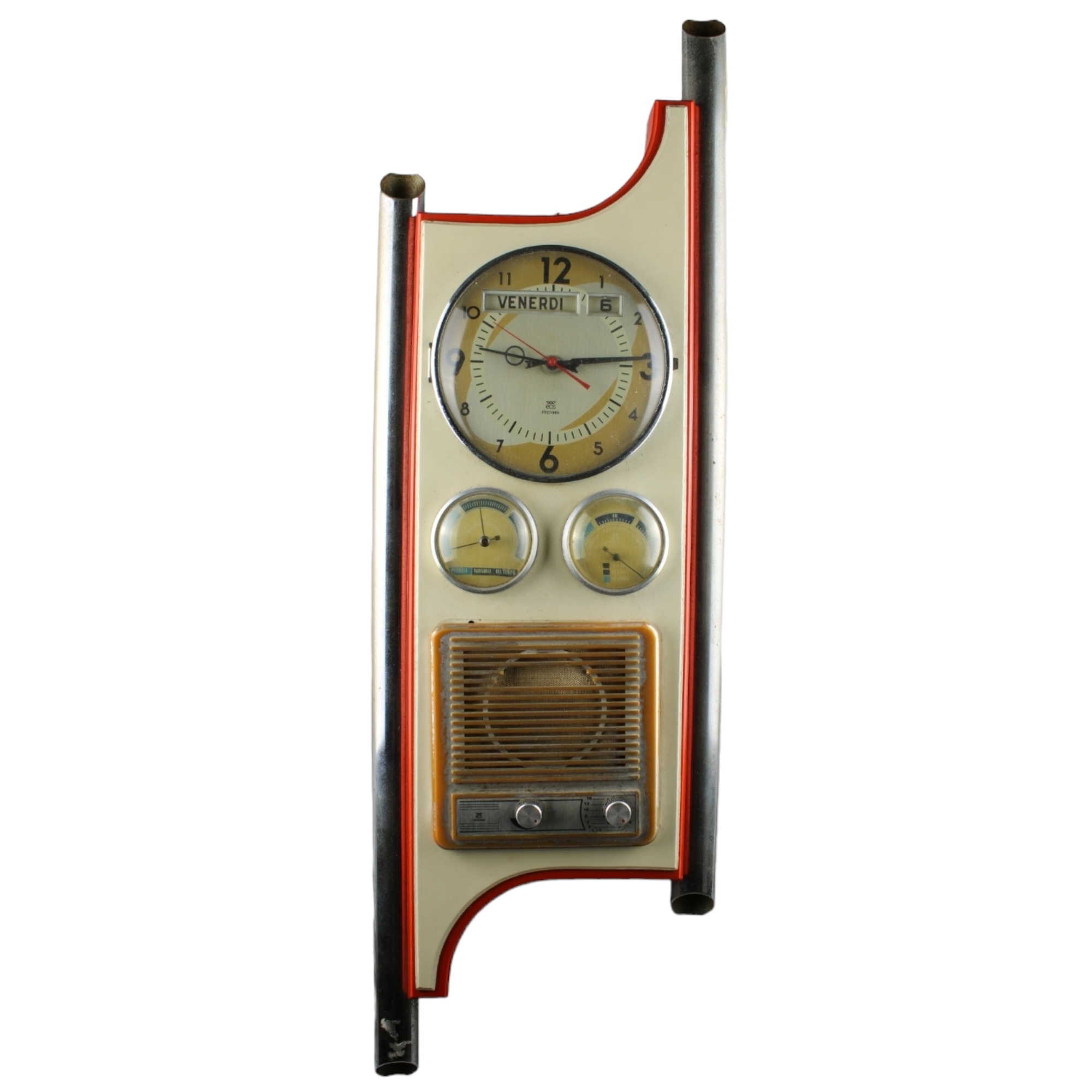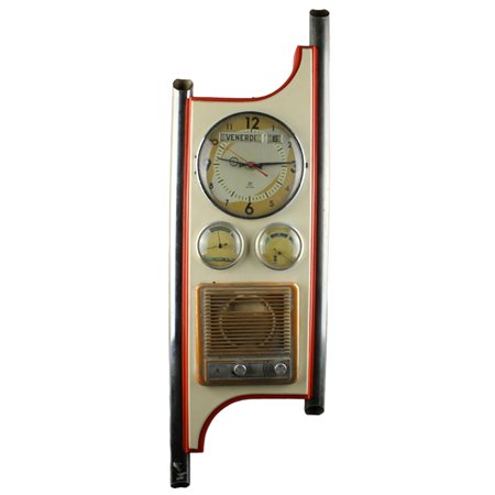 OROLOGIO DA PARETE con radio e barometro h cm 90 x 27 vintage