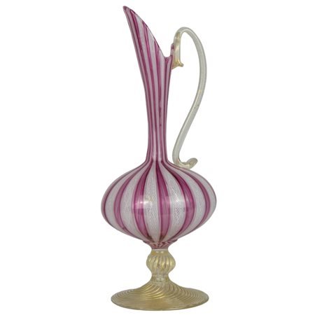 PICCOLA BROCCA in vetro di Murano a strisce lilla XX secolo h cm 28 x 13