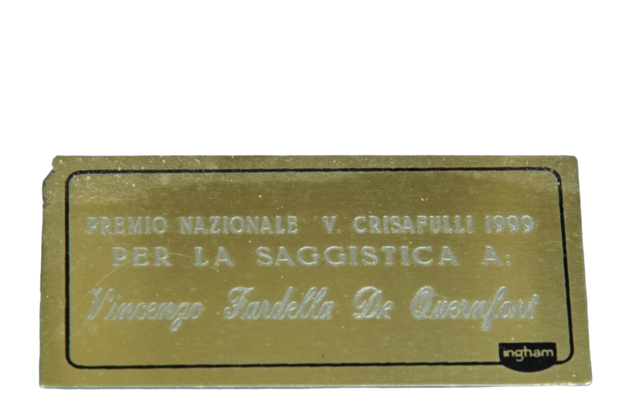SCULTURA IN FIOR DI TUFO con targa premio per la saggistica 1999 h cm 38 x 19 x 12