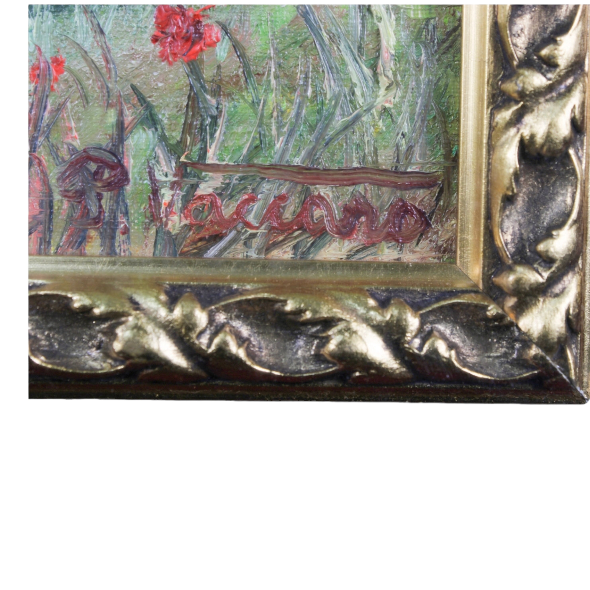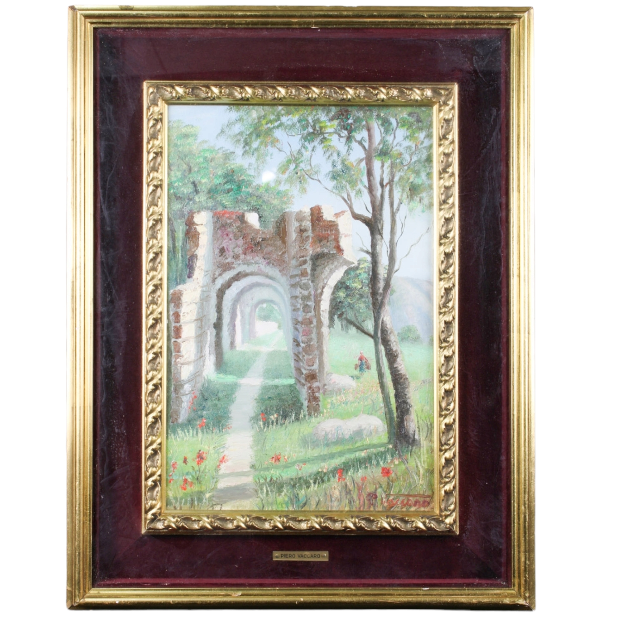 OLIO SU TELA Raff Paesaggio con rudere contemporaneo h cm 43 x 29 con cornice h cm 66 x 51