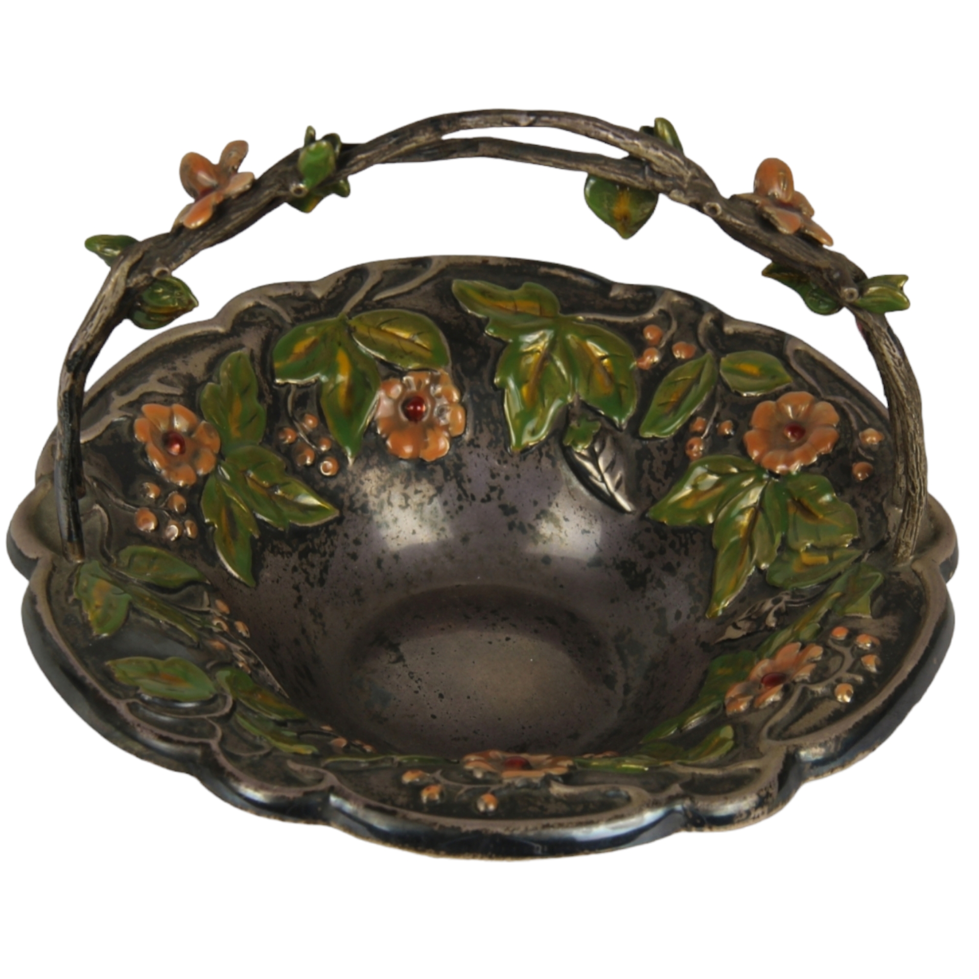 CESTINO in argento 925 sbalzato decorato da ramage a motivi floreali Vanni Mazzetti Firenze XX secolo h cm 13 x 16,5