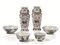 Coppia di vasi, Cina sec. XIX, di forma esagonale, in porcellana famiglia rosa, anse a cani di Pho, decoro floreale, restauri (2)