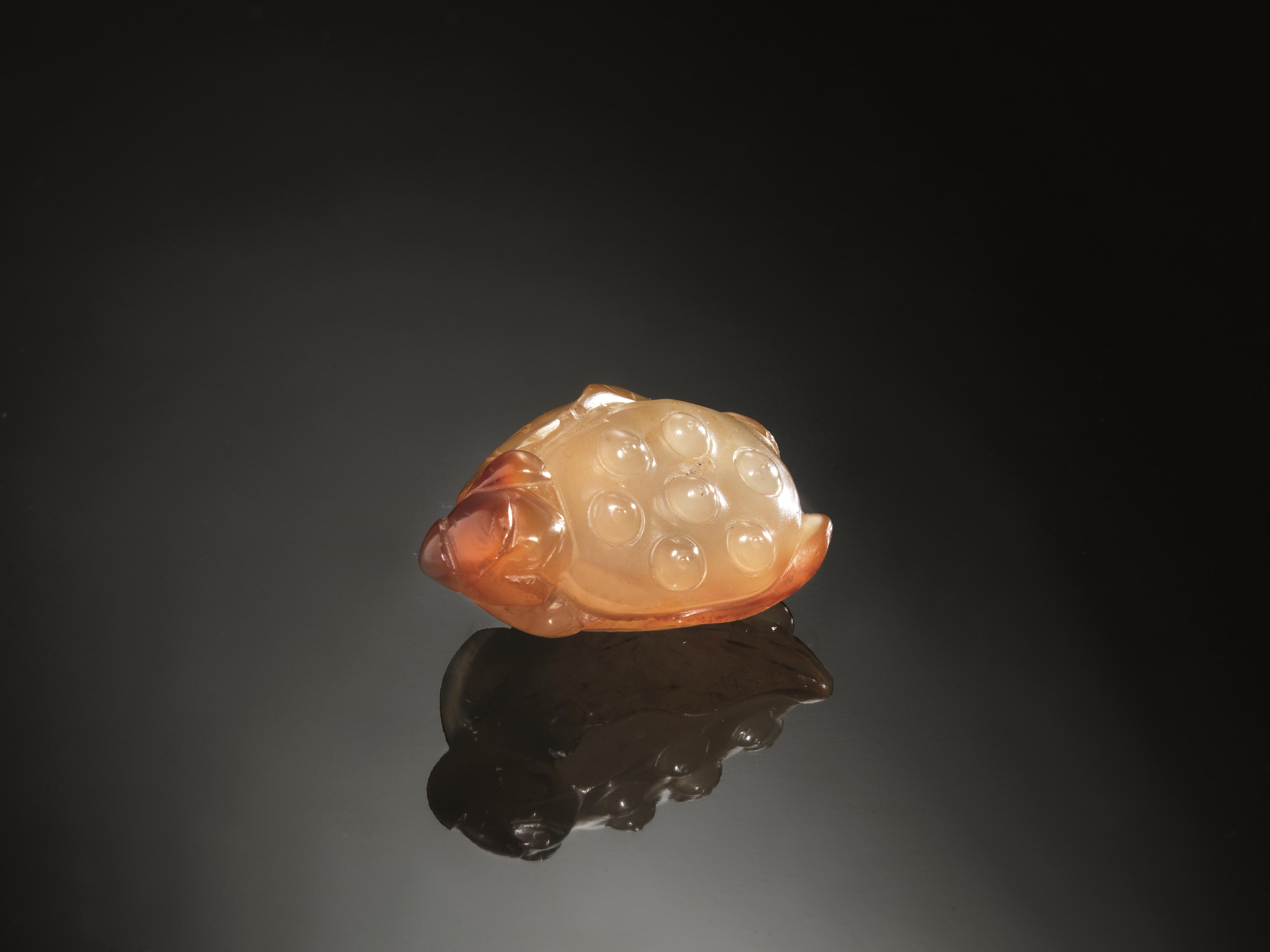 Intaglio, fine dinastia Qing, sec. XIX, in agata raffigurante un bocciolo di fior di loto, lung. cm 5 ca