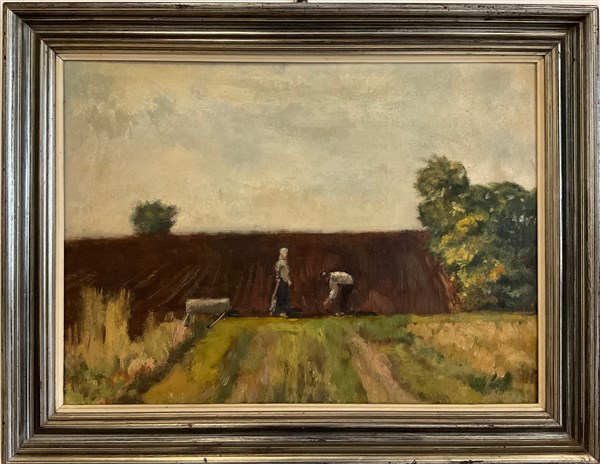 Ignoto "Il lavoro dei campi" 1971, olio su tavola (cm 44x60) , firmato Beretta,