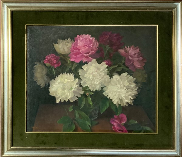 Lotto 497 | Ignoto del XX secolo, "Vaso con fiori" olio su tela (cm 50x60) Firmato in basso