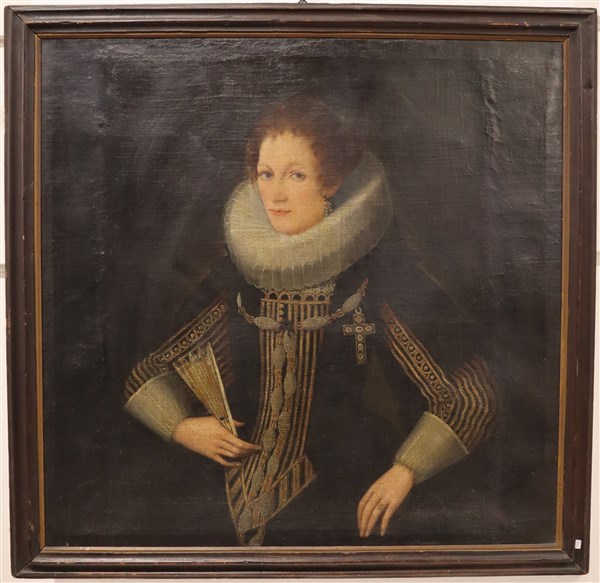 Lotto 517 | Scuola del XVII secolo, Ritratto di dama con ventaglio, olio su tela (cm 92,5x9