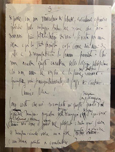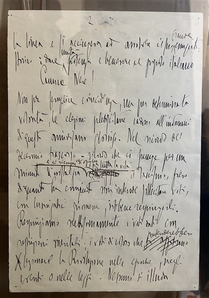 MUSSOLINIANA: Minuta autografa firmata da Benito Mussolini e datata da Palazzo Vecchio di un discorso pronunciato dal duce in occasione del decimo anniversario della fondazione dei Fasci di Combattimento. Intitolata "23 marzo 1919 - 23 marzo 1929 - Anno VI E.F. X Annuale dei Fasci di Combattimento". Numerose correzioni a penna ed una a matita blu. Al verso dei 4 fogli si trova un testo dattiloscritto di Mussolini relativo alla composizione delle liste per le elezioni politiche e tra gli aspetti più salienti alla costituzione della Milizia Volontaria per la Sicurezza Nazionale. Per minuta si intende l’originale del documento conservato “agli atti” (difetti, il margine inferiore del terzo foglio è stato tagliato) In cornice