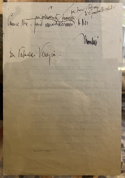 MUSSOLINIANA: Minuta autografa firmata da Benito Mussolini e datata da Palazzo