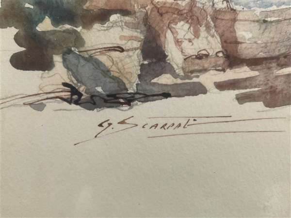 Giorgio Scarpati, "Mercato a Napoli", acquerello su carta (cm 34x49) Firmato in basso a sinistra. Al retro: cartiglio della Galleria Ranzini Milano.