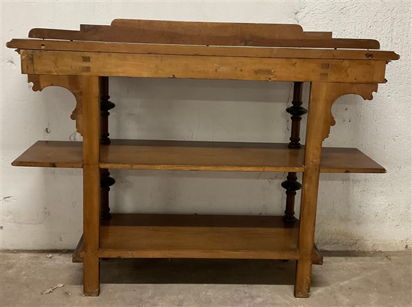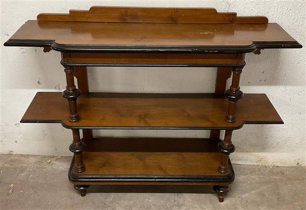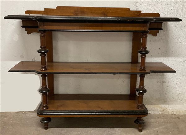 Etagère a tre ripiani in legno intagliato con profili ebanizzati (cm 147x108x40) (difetti)