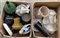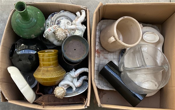 Due cartoni conteneti numerosi oggetti di diversi materiali, uso e fatture (difetti)
