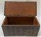 Antico cofanetto in legno con coperchio incernierato, fronte decorato a figurette pirografate a fondo ribassato. Alto Veneto (cm 36x16x17) (difetti)