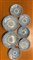 Lotto composto da sette piattini in porcellana bianca e blu. Cina, sec. XIX/XX
