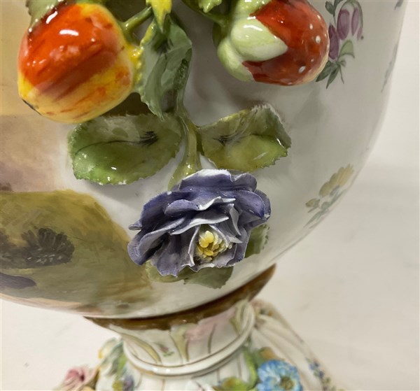 Manifattura tedesca, secolo XIX - XX. Vaso con coperchio in porcellana dipinta