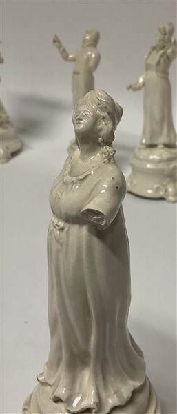 Manifattura G.B.M. Vicenza, lotto composto da otto figure diverse in terraglia bianca (h max cm 28) (difetti e mancanze)