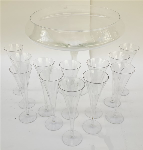 Lotto composto da un'alzata a coppa in vetro e dodici flute in cristallo firmat