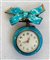 Orologio da tasca in argento. Secolo XX. Movimento meccanico a carica remontoir. Quadrante bianco con numeri arabi stampati. Diam. mm 22. con spilla a fiocco. (lievi difetti)