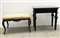 Tavolino in legno intagliato ed ebanizzato con piano in marmo grigio (cm 73x67x37) unito a panchetto in stile Luigi XV in legno intagliato (cm 74x46x43) (difetti)
