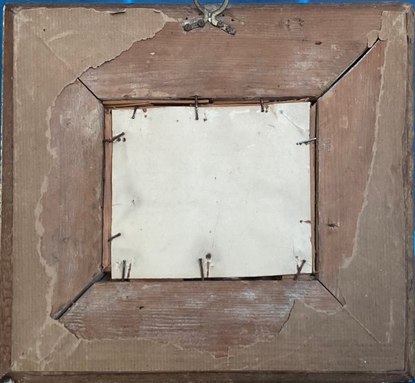Ignoto, antico dipinto ad olio su rame raffigurante l'Annunciazione (cm 7,6x9,5) (frammento) in cornice in legno dorato (difetti)