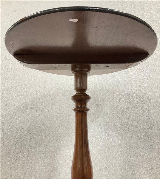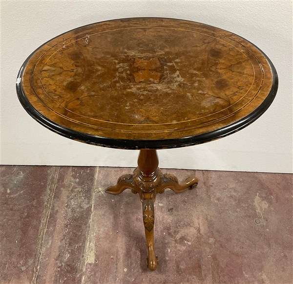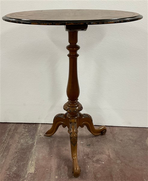 Lotto 657 | Tavolino d'appoggio tripode in legno intagliato lastronato e filettato con sost