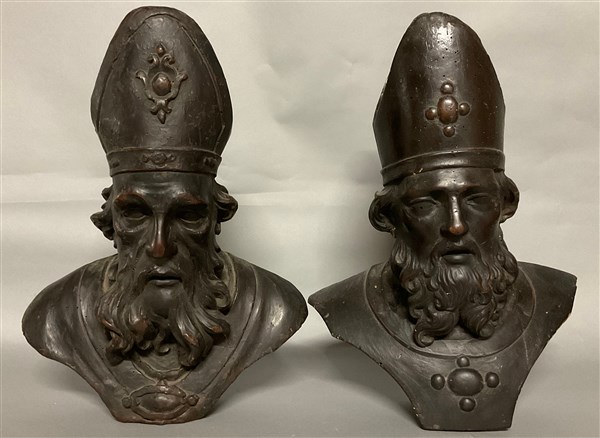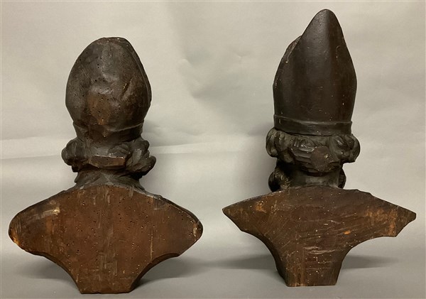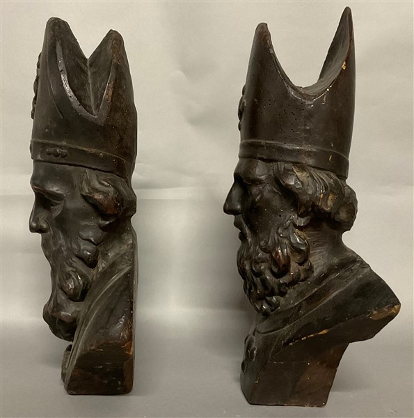 Lotto 663 | Scultore del secolo XVIII "Busti di vescovo" due sculture in legno intagliato e