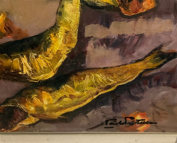 Paolo Pratella "Aringhe" olio su cartone (cm 50x60) Firmato in basso a destra A