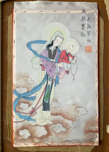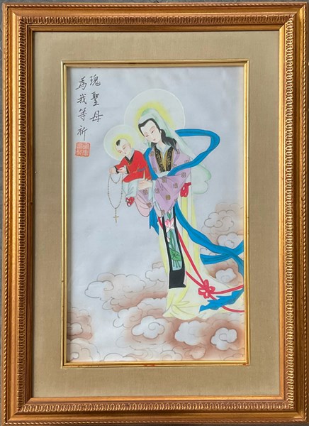Lotto composto da due dipinti su seta raffiguranti rispettivamente Madonna orie
