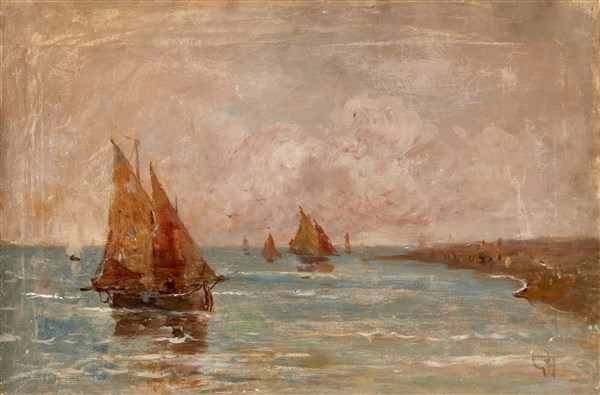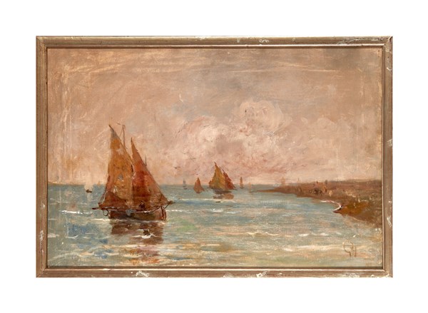 Giovanni Battista Todeschini "Marina con barche" olio su tela (cm 40x60) Siglat