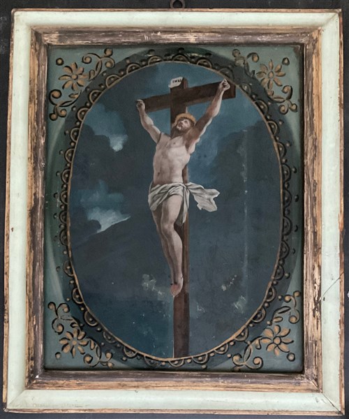Arte del secolo XVIII, Cristo crocefisso, verre-peint (cm 44x35) In cornice