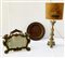Lotto composto da un'antica cartagloria in legno intagliato e dipinto, un cande