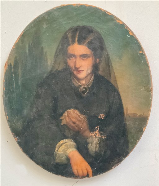 Gerolamo Induno (Attr.) "Vedova Cairoli" 1863, olio su tela ovale (cm 68x57) Reca firma e data non coeve in basso a destra. Al retro: titolato (difetti e restauri)