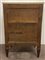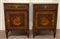 Lotto 734 | Coppia di comodini lastronati e intarsiati in legni vari a figure, candelabra e