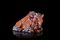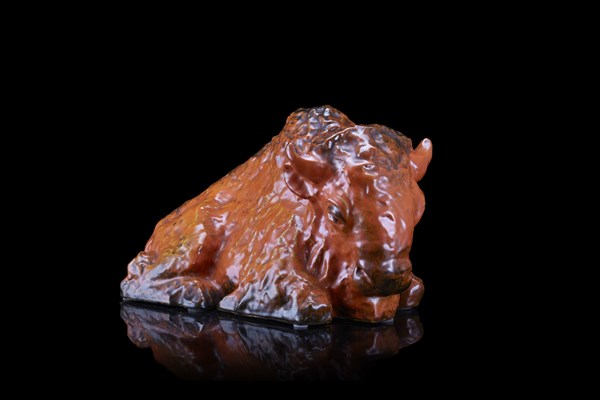 "Bison" orange and brown glazed terracotta sculpture. Italy, second half of the 20th century (cm 30x22) (defects)