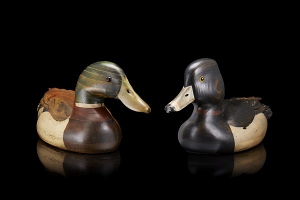 Lotto 749 | Tom Taber. Coppia di anitre in legno dipinto in policromia (L. cm 43) (difetti)