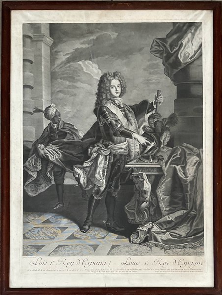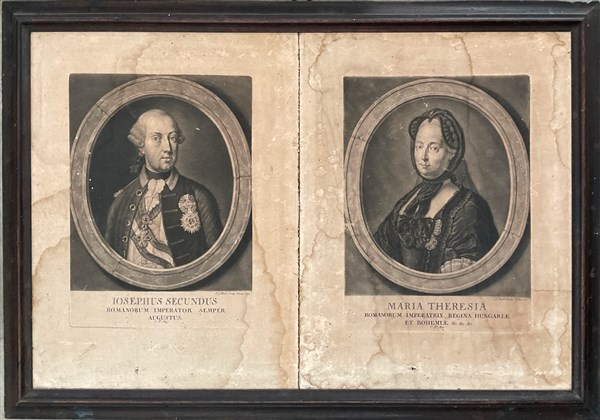 Lotto composto da quattro incisioni all'acquaforte su carta raffiguranti sovrani. Secolo XVIII (difetti e macchie) In cornice