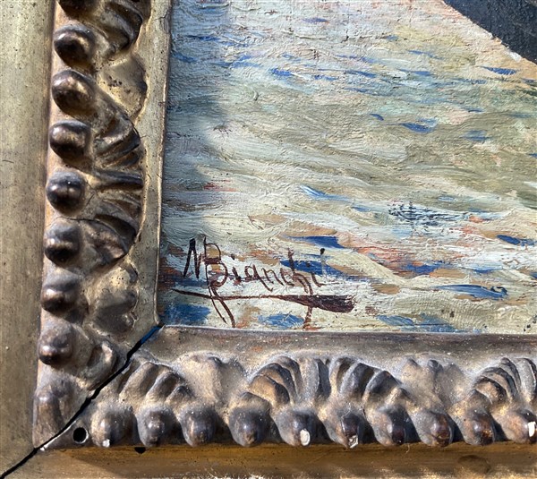 Ignoto del XIX secolo "Gondole a Venezia" olio su tavoletta (cm 14x22,5) Firm