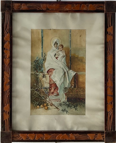 Ignoto di inizio XX secolo, "Madonna dell'ulivo" acquerello su carta (cm 43x29) In cornice (difetti)