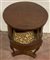Tavolino con piano circolare a due cassetti sul fronte. Gambe a collo di cigno su base tripode (d cm 44x h 68) (difetti)