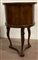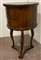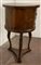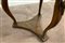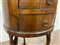 Tavolino con piano circolare a due cassetti sul fronte. Gambe a collo di cigno