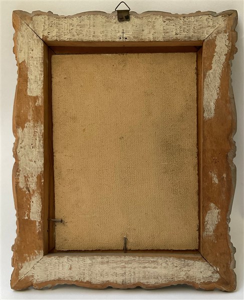 Firma indecifrata, "Alla fontana" olio su faesite (cm 24x18) Firmato in basso a sinistra. In cornice (difetti)