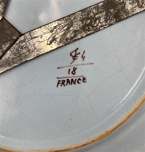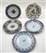 Lotto composto da cinque diversi piatti in maiolica decorati in policromia, man
