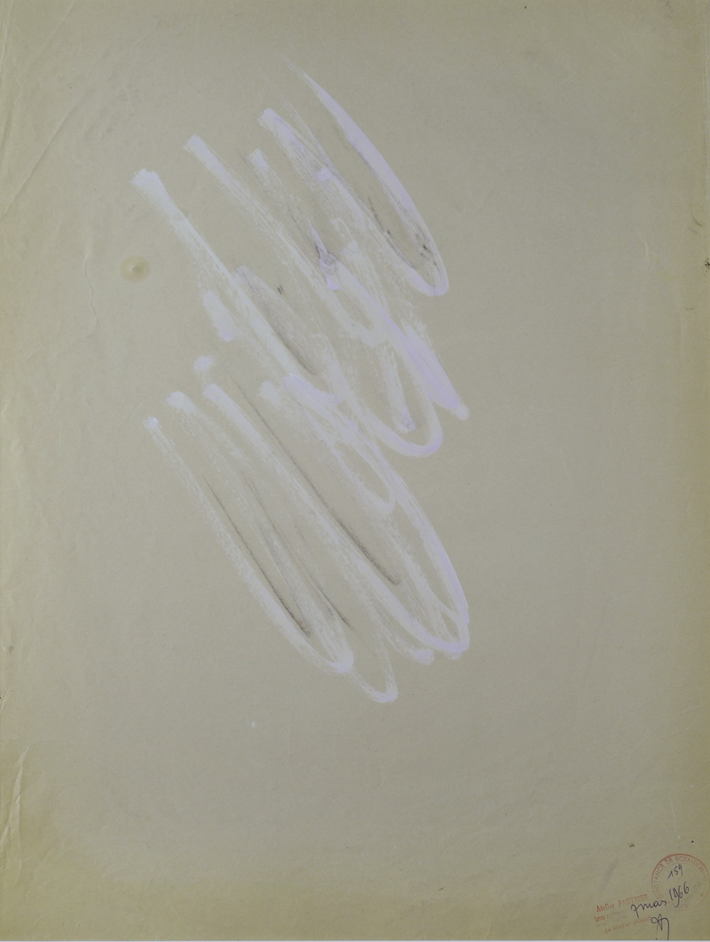 Jean Fautrier (Parigi, 1898 - Chatenay - Malabry, 1964) SENZA TITOLO, 1966 Tempera su carta., cm. 50x60,5 Timbro Atelier Fautrier in basso a destra, n.159/1966.