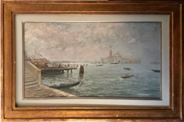 "Bacino di S. Marco" olio su tela (cm 40x70) Firmato e titolato in basso a sinistra. In cornice