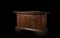 Grande credenza in noce di forma rettangolare a cinque cassetti sottopiano e due ante con prese a teste di cherubini in bronzo a cera persa. Fronte e fianchi pannellati decorati a borchiature. Piedi a mensola intagliati. Bologna, inizio secolo XVII (cm 193x108x70) (rotture, restauri e sostituzioni)
