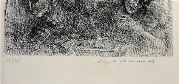 Firma indecifrata "Senza titolo" acquaforte (foglio cm 69x48) firmato, datato '73 e numerato XV/XXX in basso a matita