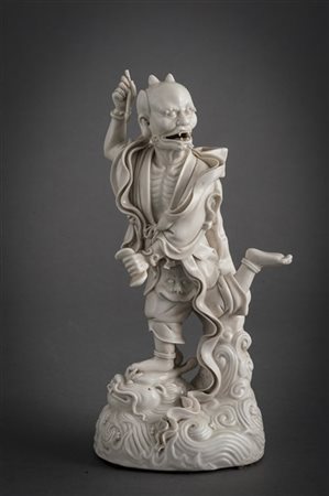 Scultura in porcellana blanc-de-chine raffigurante l'immortale Kui Xing, tipica