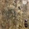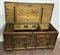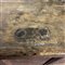Cassone in legni vari, fronte decorato da pennellature, tracce di policromia. S