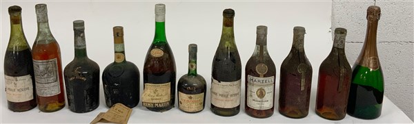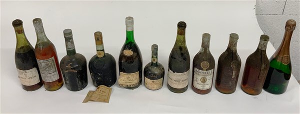 Un cartone contenente bottiglie di vini e distillati (difetti alle bottiglie, a