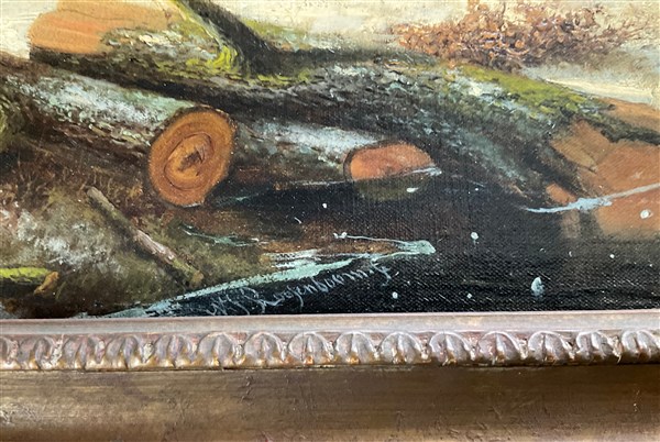 Nicolaas Johannes Roosenboom "Scorcio di paese nordico con pattinatori" olio su